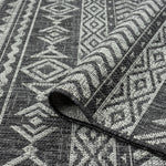 This flat-weave, indoor/outdoor collection is curated from restful patterns and a monochromatic colour palette and is power loomed from polypropylene with a water-resistant base. This budget-friendly range, while complementing interior spaces, is also suitable for outdoor use in covered patios, balconies, terraces, and courtyards. This highly versatile collection also has quality finishes including all-side binding and contains shed-resistant and anti-static properties for easy maintenance.
