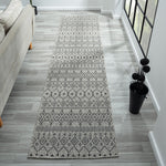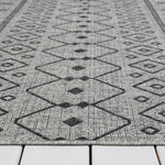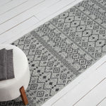 This flat-weave, indoor/outdoor collection is curated from restful patterns and a monochromatic colour palette and is power loomed from polypropylene with a water-resistant base. This budget-friendly range, while complementing interior spaces, is also suitable for outdoor use in covered patios, balconies, terraces, and courtyards. This highly versatile collection also has quality finishes including all-side binding and contains shed-resistant and anti-static properties for easy maintenance.