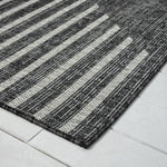 This flat-weave, indoor/outdoor collection is curated from restful patterns and a monochromatic colour palette and is power loomed from polypropylene with a water-resistant base. This budget-friendly range, while complementing interior spaces, is also suitable for outdoor use in covered patios, balconies, terraces, and courtyards. This highly versatile collection also has quality finishes including all-side binding and contains shed-resistant and anti-static properties for easy maintenance.